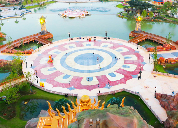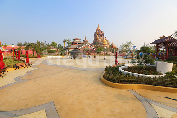 鋪裝類型:彩色混凝土洗砂面藝術(shù)地坪、壓印藝術(shù)地坪