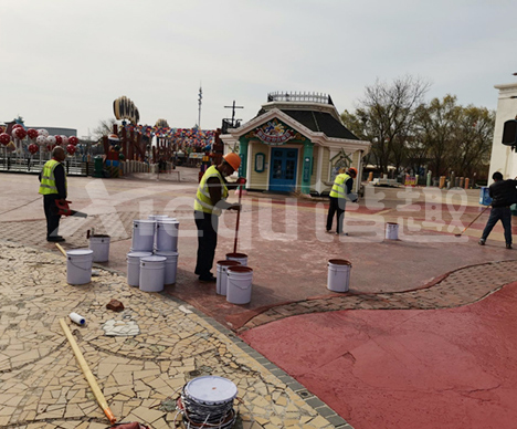 大連海昌是臨海樂園,海風使空氣中含有鹽分,在一定程度上會加速路面的老化,所以需要以最經濟實惠可行的方法進行翻新。