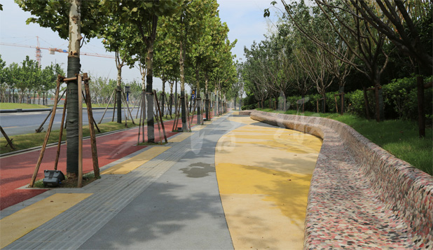 3、裝飾效果,透水地坪擁有色彩優(yōu)化配比方案,能夠配合設(shè)計師獨特創(chuàng)意,實現(xiàn)不同環(huán)境和個性所要求的裝飾風(fēng)格。這是一般透水磚很難實現(xiàn)的。